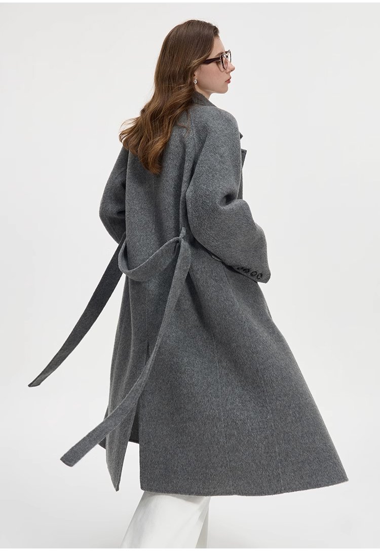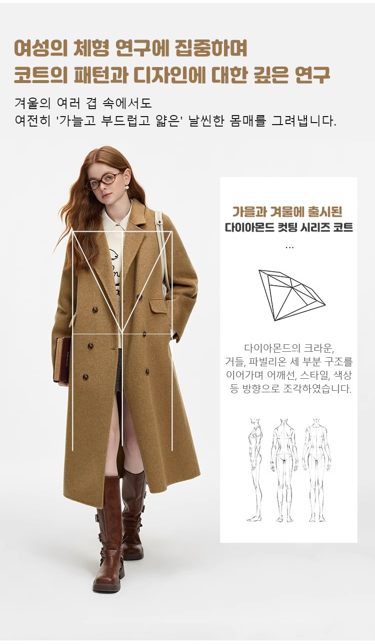 여성 미디롱 가을 겨울 헵번 모직 코트