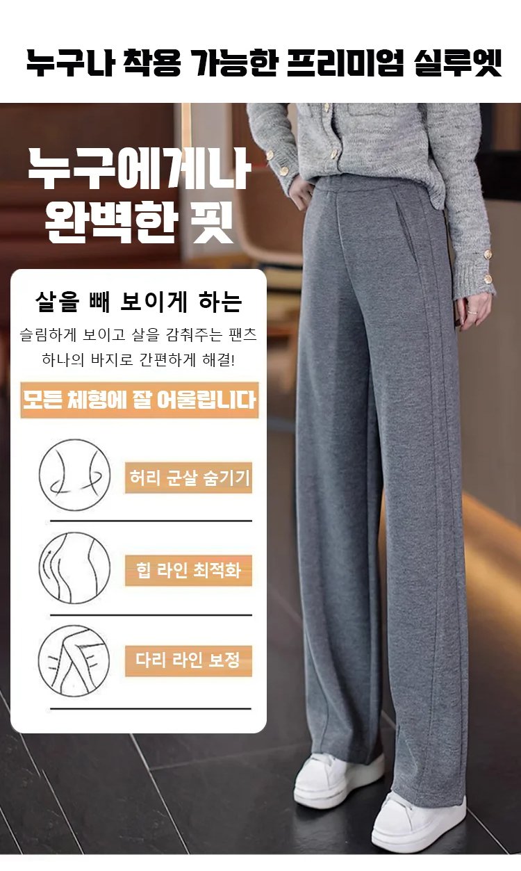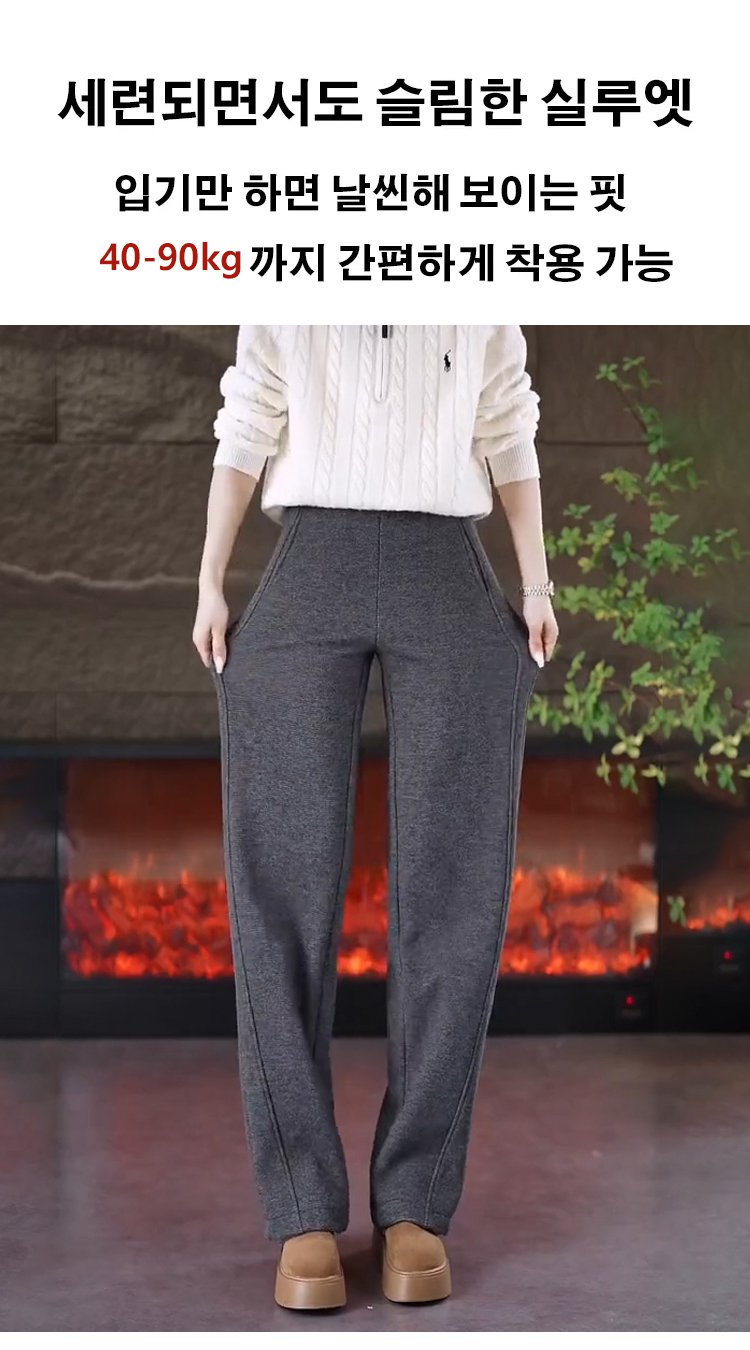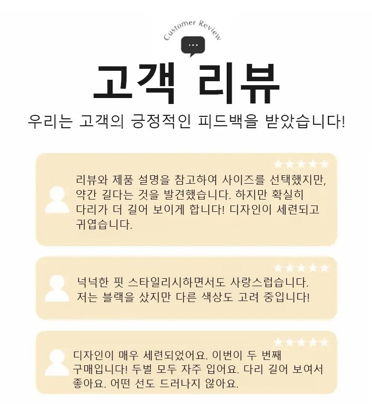 곡선형 재단과 하이웨스트 디자인으로 군살을 커버하고 날씬해 보이며 다리가 길어 보입니다.
